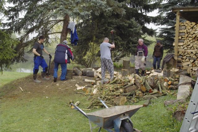 unsere fleißigen Mitglieder beim Brennholzmachen ….